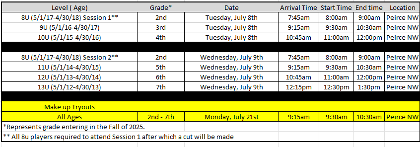 - Offers will be extended after the initial tryout date and before the makeup date consistent with other organizations in the area. Only a number of spots per age level will be held open for the makeup tryout.